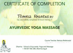 Z czasem do tej ścieżki dołączył dotyk. Zupełnie niespodziewanie trafiłem na kurs ajurwedyjskiego masażu jogicznego u Bartka Bobkowskiego – i to spotkanie całkowicie zmieniło moje życie. Od tamtej pory wiedziałem, że to właśnie poprzez ciało i dotyk chcę pomagać innym w powrocie do siebie.